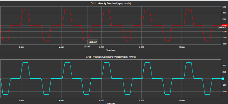 Parker直線電機(jī)軟件操作簡單,容易掌握,可實(shí)時監(jiān)測電機(jī)的動態(tài)---速度和位移反饋曲線如下圖